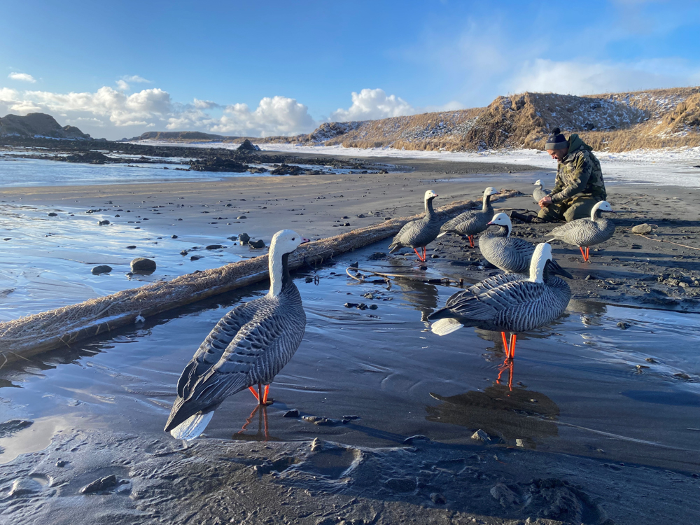 During last winter’s trapping season, our decoys were put to the test. After several successful rocket net deployments, the team noticed a shift: the Emperors became more relaxed around the decoys, allowing the team to capitalize on the holding power of DSD’s design. Thanks to the team’s creativity and persistence, that year Alaska Department of Fish and Game reported having had the greatest capture rates since the inception of the program. For us at DSD, being part of this success is a reminder that sometimes the right decoy doesn’t just fool a bird, sometimes it helps protect a species.