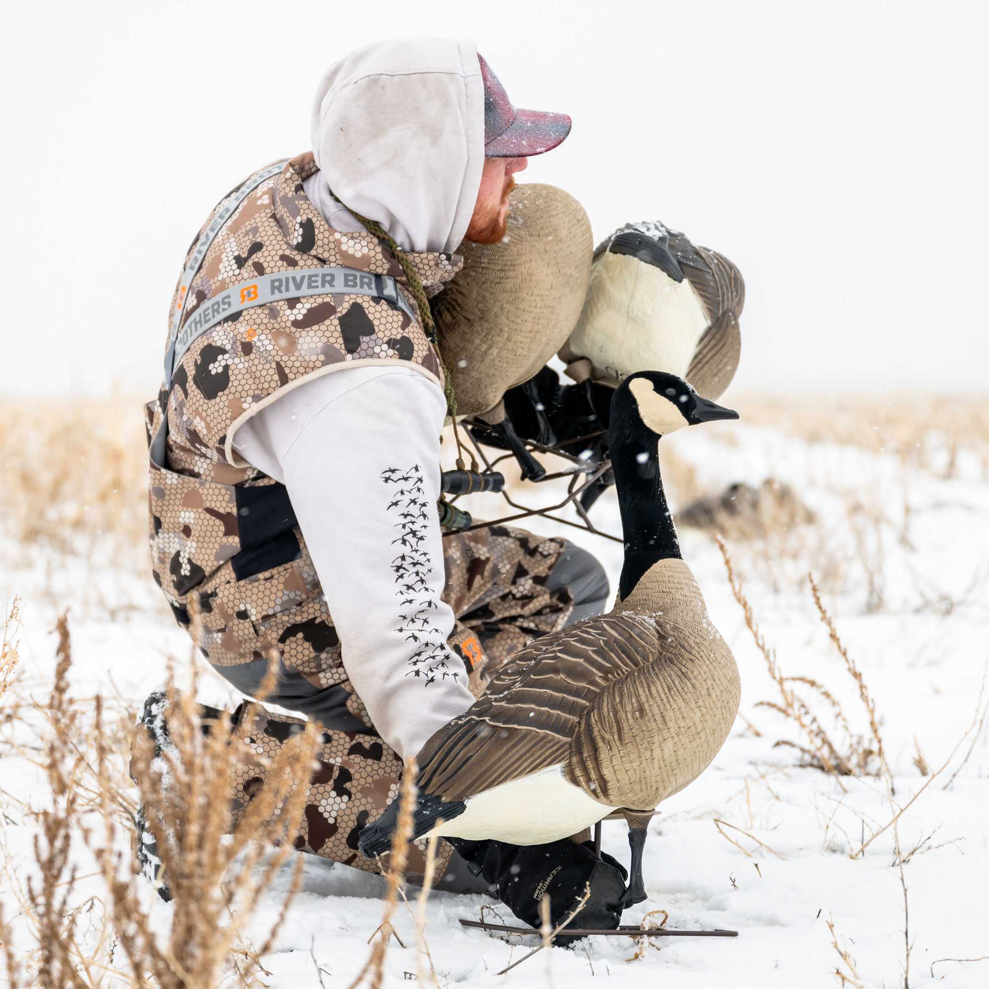 These decoys are large and in charge while remaining some of the lightest available. With our tried and true motion system, the lightest breeze allows these decoys to sway back and forth in the exact oscillation of a grazing or walking Canada Goose. With two piece positionable heads you can add even more variation in poses to your spread. Decked out in our deadly accurate Maxima paint scheme, these decoys will finish geese from early season all the way to the bitter end.